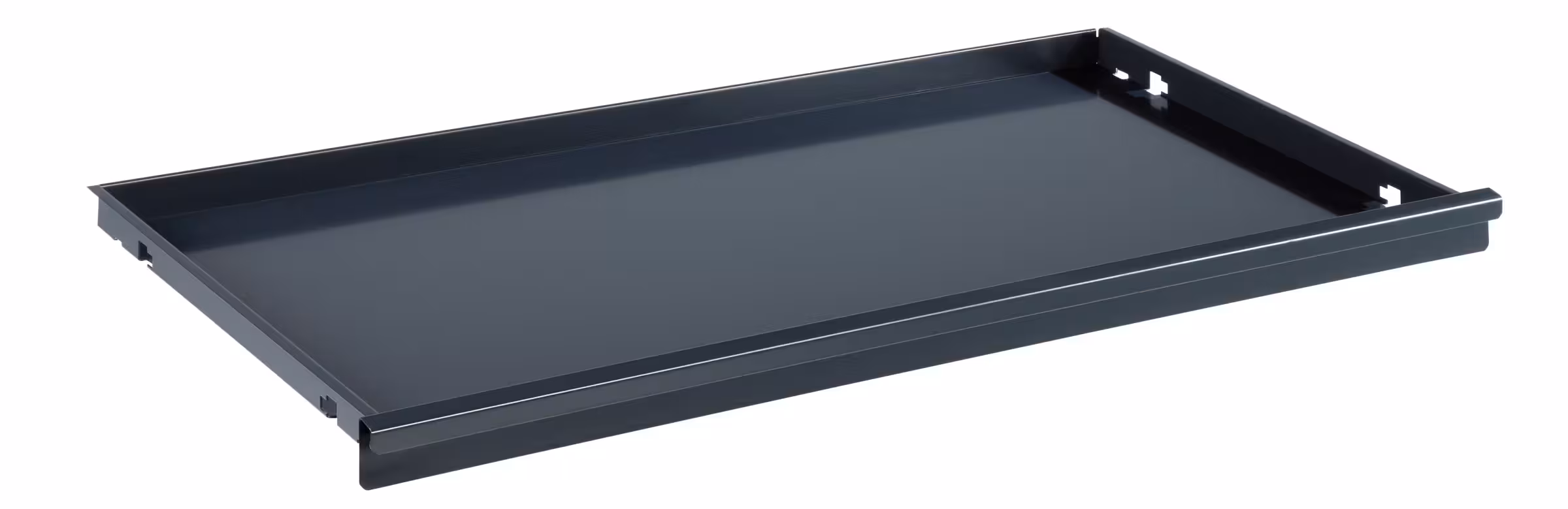 Schubladen und Auszugböden: Vollauszug mit Kugellager, inklusive Führungsschienen. Tragkraft 50 kg. Ausführung: Stahlblech. Farbe: Anthrazitgrau, RAL 7016.