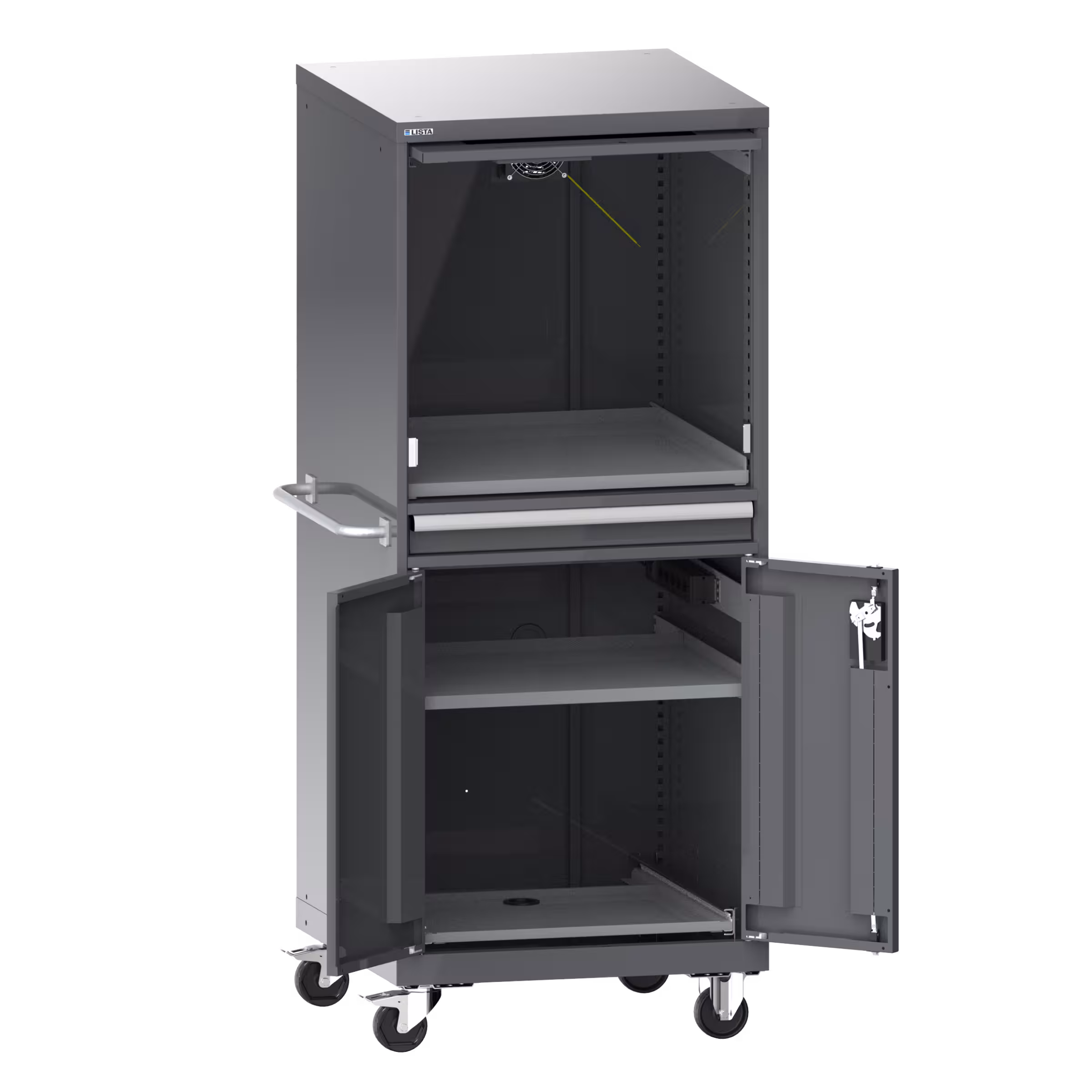 Computerschränke: Computer und die dazugehörige Hard- und Software müssen in der Produktion vor Staub, Schmutz und unerlaubtem Zugriff geschützt werden. Mit dem LISTA Computerschrank steht eine sichere und bewährte Lösung zur Verfügung.
