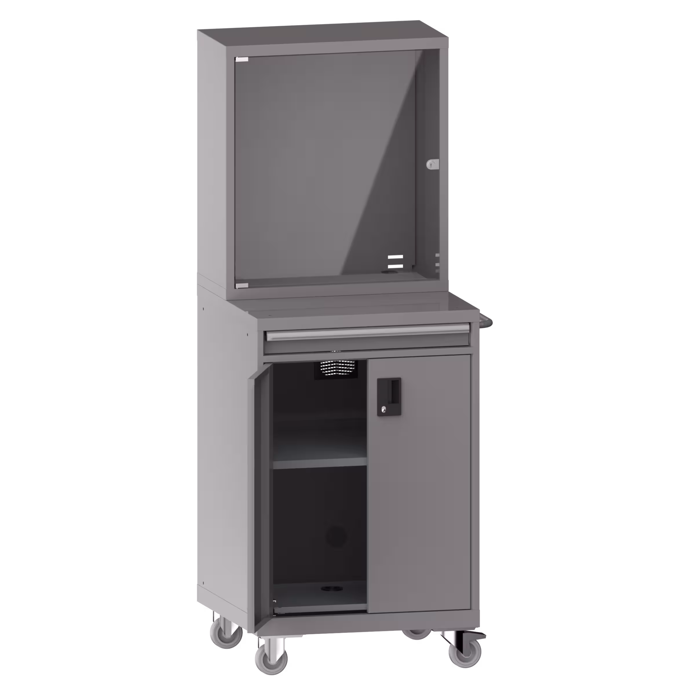 1 Monitorfach mit rechts anschlagender Flügeltür, mit Zylinderschloss,