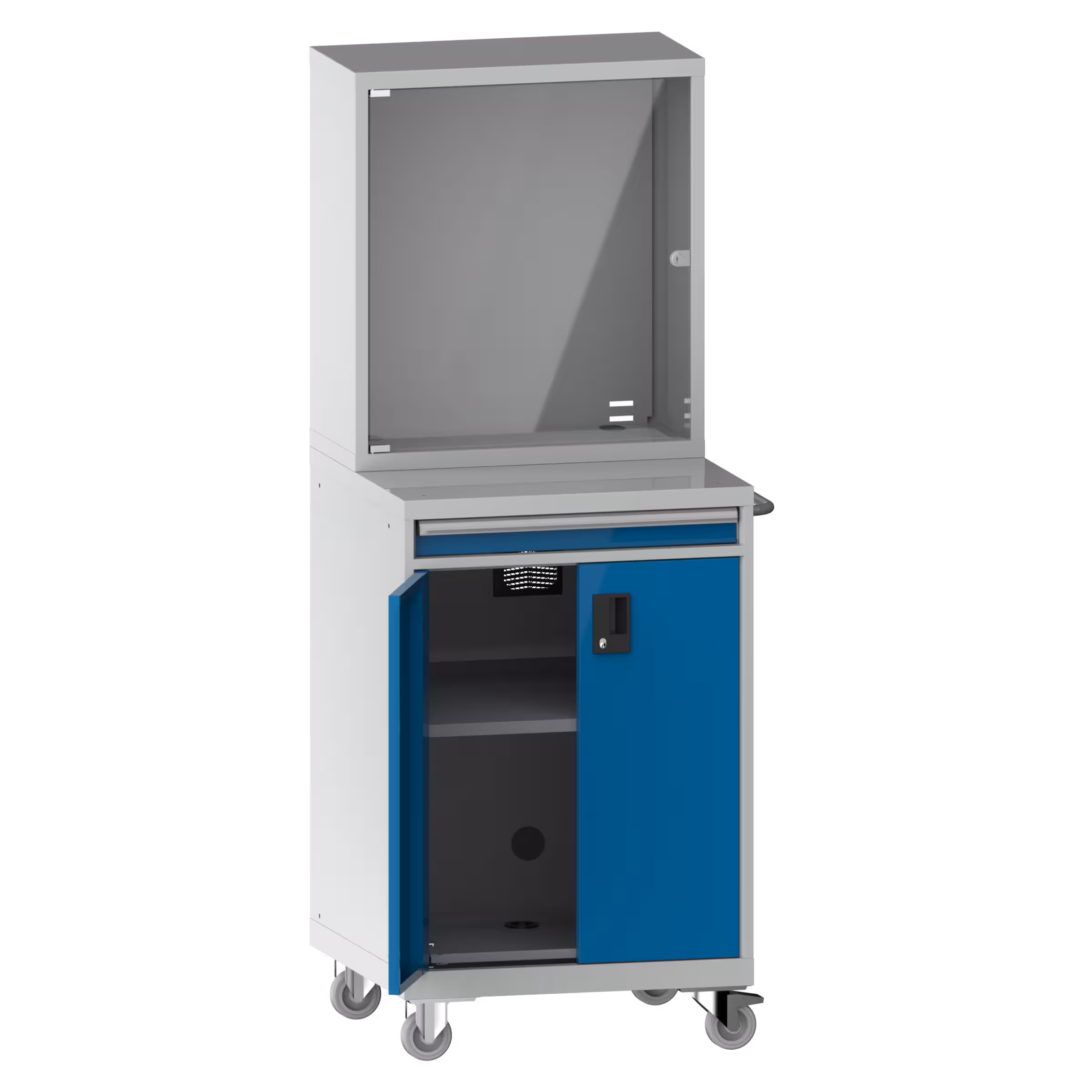 1 Monitorfach mit rechts anschlagender Flügeltür, mit Zylinderschloss,