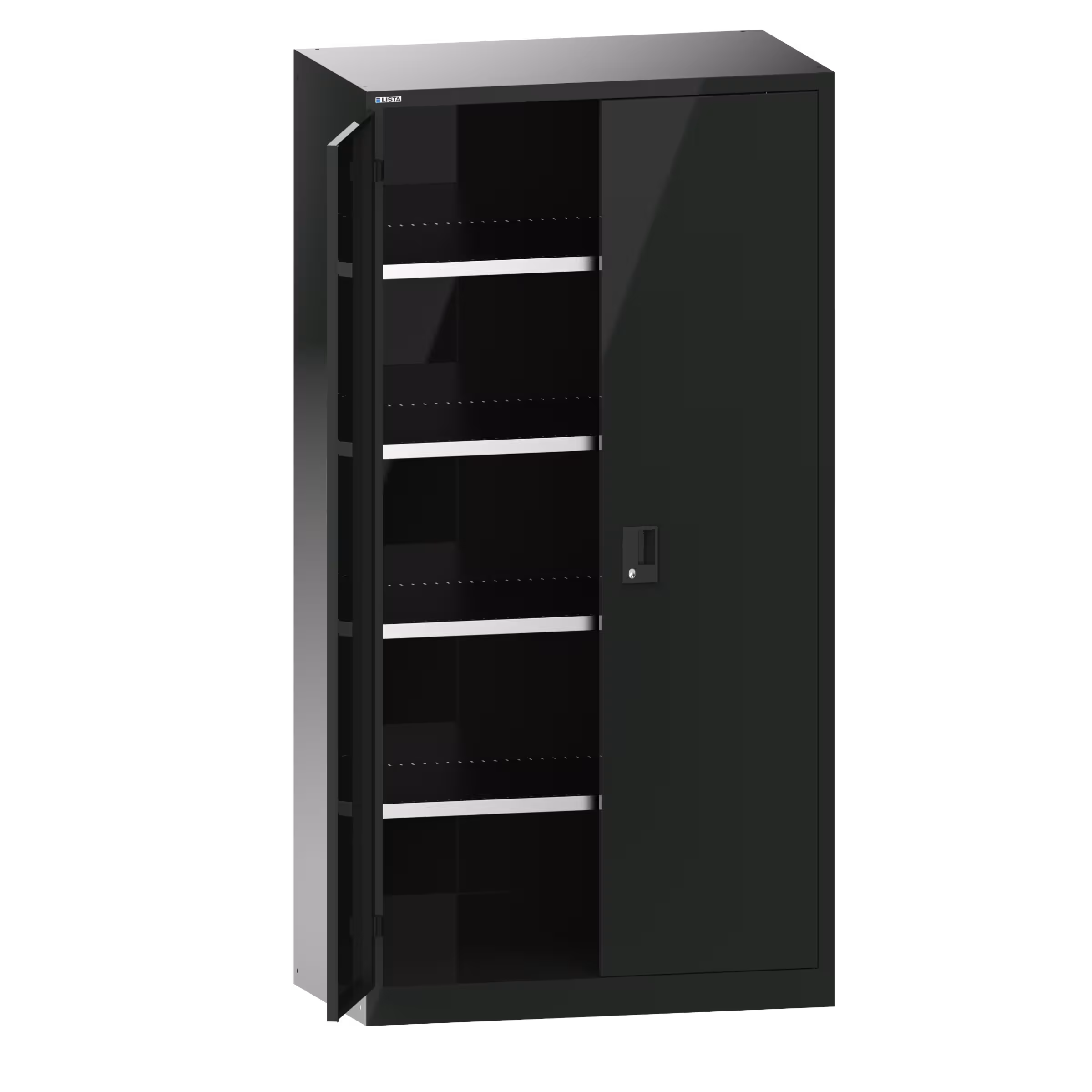 Flügeltürschrank mit 2 Vollblech-Türen Scharnierlagerung (BxTxH) 1000x580x1950mm 4 Verstellböden KEY Lock Schwarz NCS S 9000-N