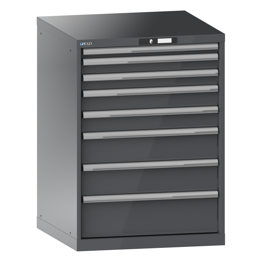 Schubladenschrank 36x36E (BxTxH) 717x725x1000mm 8 Schubladen (1x50/2x75/2x100/2x150/1x200) 75kg KEY Lock Grau metallic NCS S 6502-B
