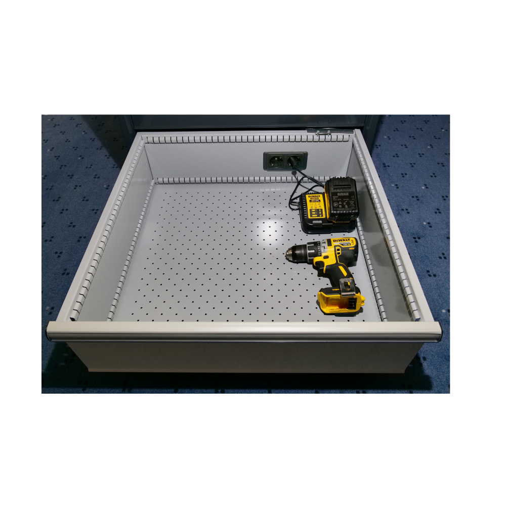mit Lademöglichkeiten für akkubetriebene Elektromaschinen, BDE-Geräte, Notebooks, Tablets und Smartphones