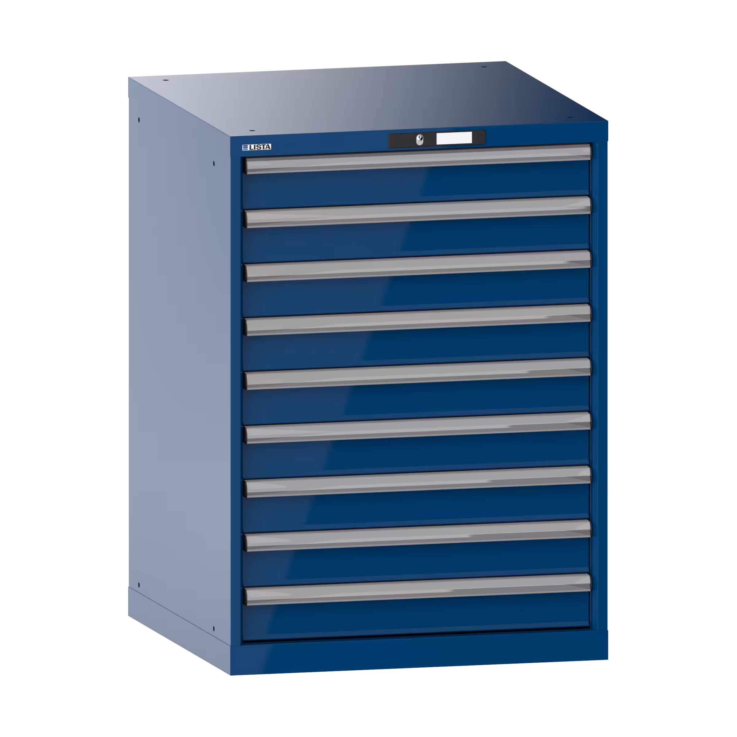 Schubladenschrank 36x36E (BxTxH) 717x725x1000mm 9 Schubladen (9x100) 75kg KEY Lock Enzianblau RAL 5010