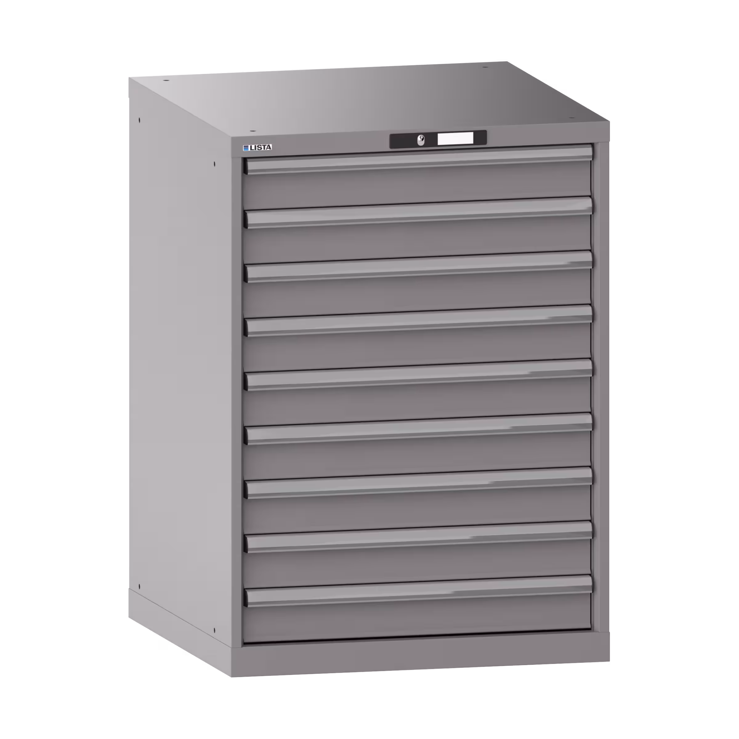 Schubladenschrank 36x36E (BxTxH) 717x725x1000mm 9 Schubladen (9x100) 75kg KEY Lock Graualuminium RAL 9007