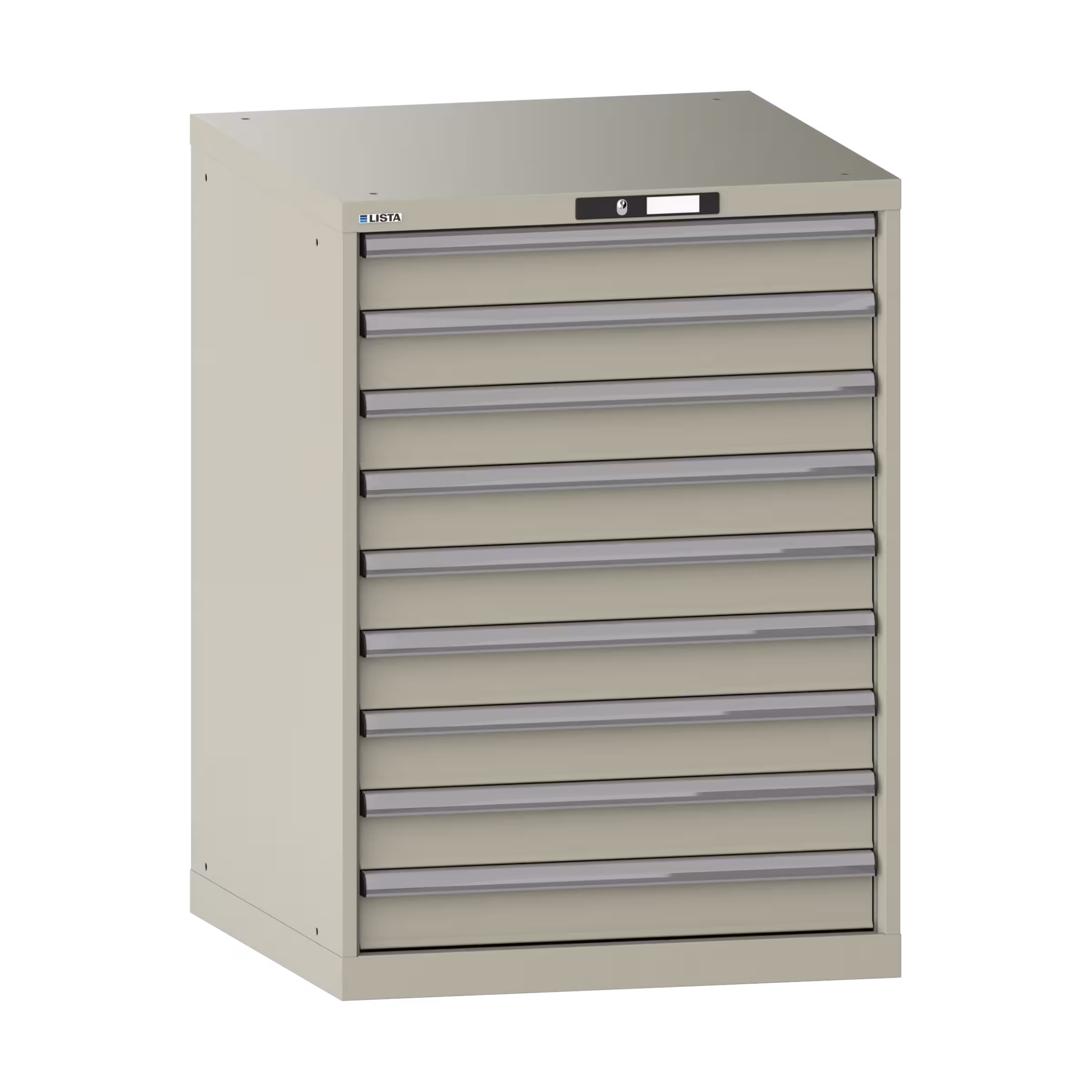 Schubladenschrank 36x36E (BxTxH) 717x725x1000mm 9 Schubladen (9x100) 75kg KEY Lock Kieselgrau RAL 7032