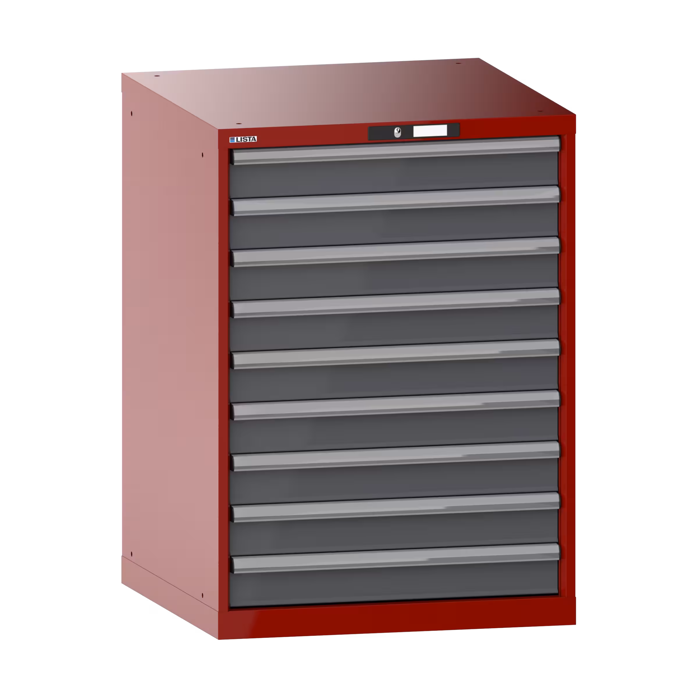 Schubladenschrank 36x36E (BxTxH) 717x725x1000mm 9 Schubladen (9x100) 75kg KEY Lock Rubinrot RAL 3003 / Grau metallic NCS S 6502-B