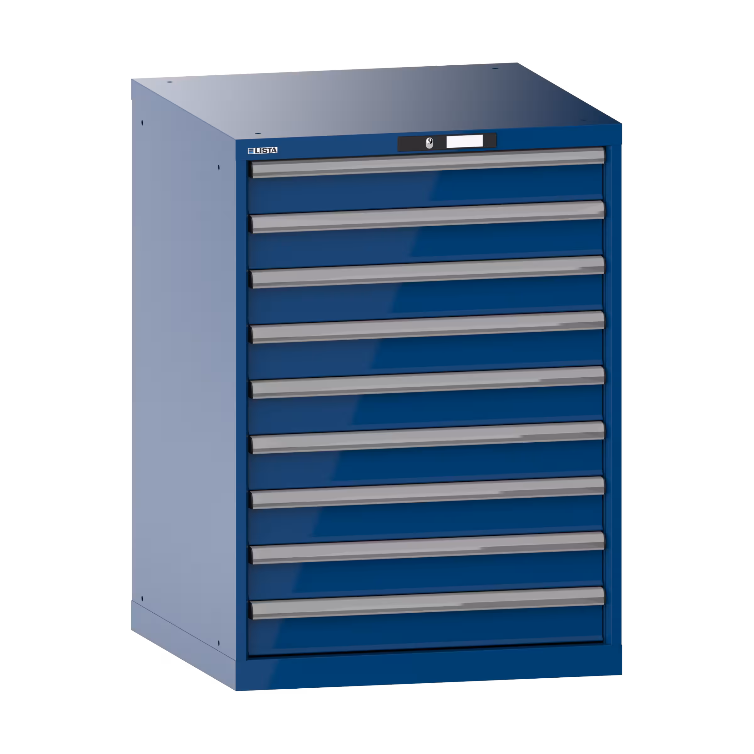 Schubladenschrank 36x36E (BxTxH) 717x725x1000mm 9 Schubladen (9x100) 75kg KEY Lock Signalblau RAL 5005