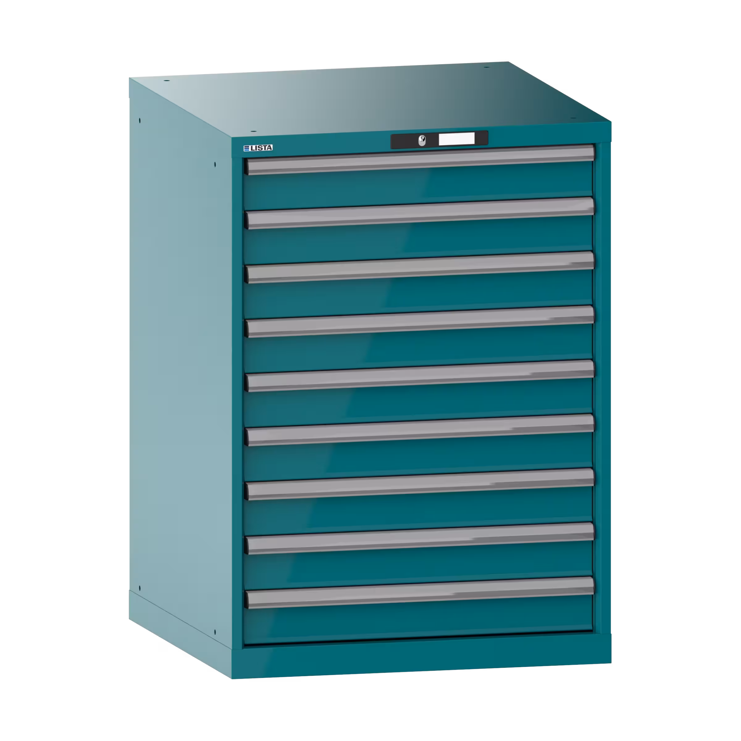 Schubladenschrank 36x36E (BxTxH) 717x725x1000mm 9 Schubladen (9x100) 75kg KEY Lock Türkisblau RAL 5018