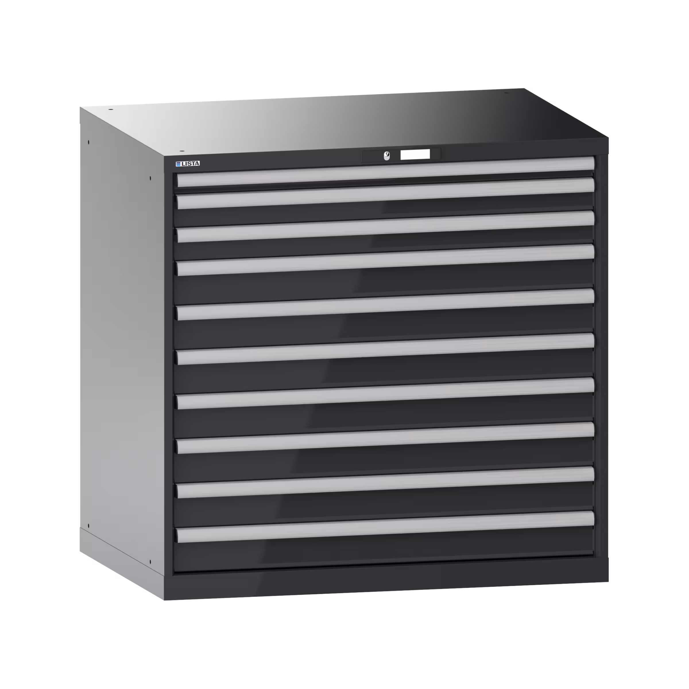 Schubladenschrank 54x36E (BxTxH) 1023x725x1000mm 10 Schubladen (1x50*/2x75/7x100) *75/200kg KEY Lock Anthrazitgrau RAL 7016