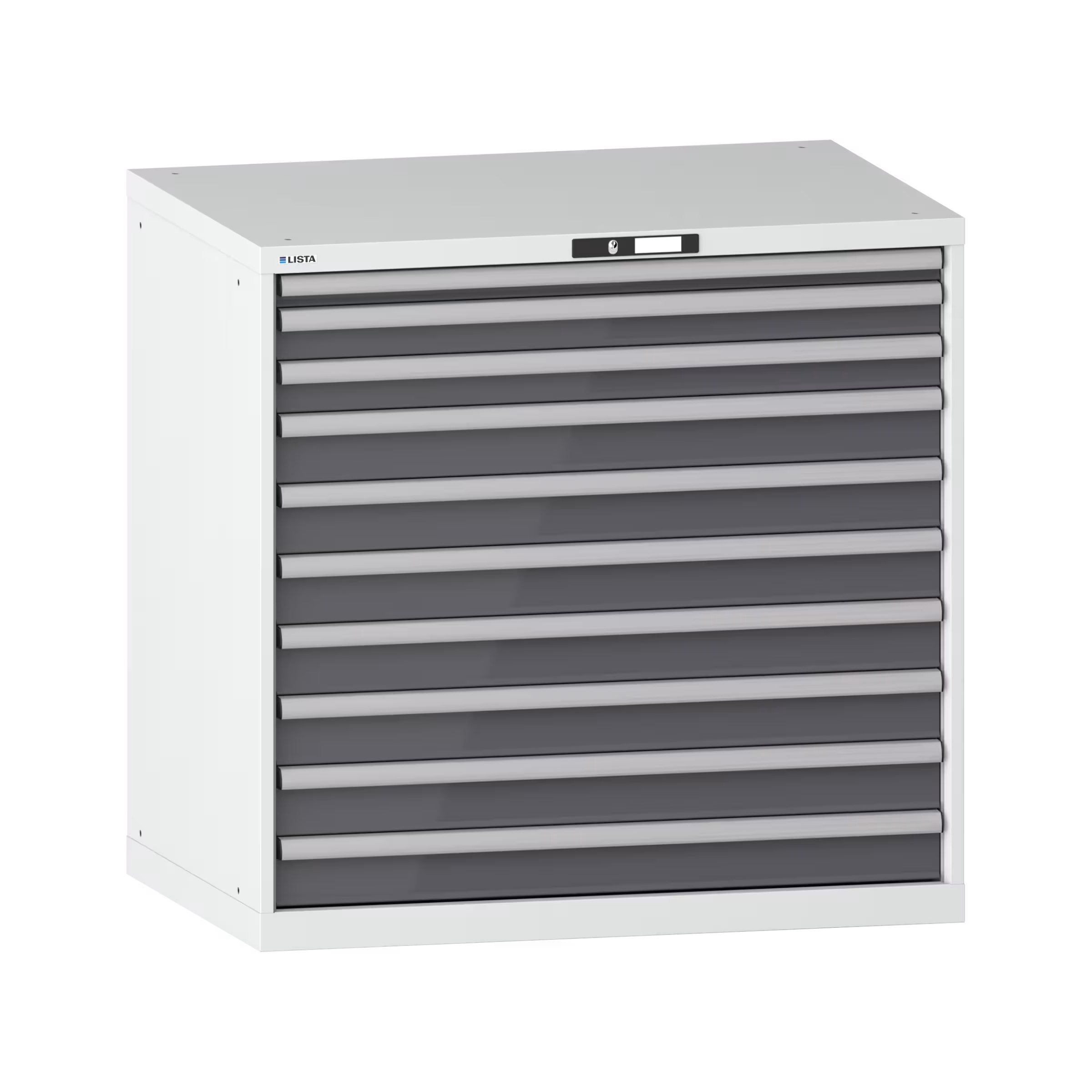 Schubladenschrank 54x36E (BxTxH) 1023x725x1000mm 10 Schubladen (200kg) KEY Lock Lichtgrau RAL 7035 / Grau metallic NCS S 6502-B
