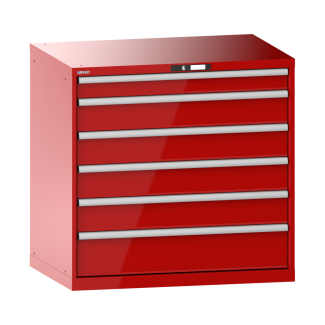 Schubladenschrank 54x36E (BxTxH) 1023x725x1000mm 6 Schubladen (1x100/4x150/1x200) 200kg KEY Lock Feuerrot RAL 3000