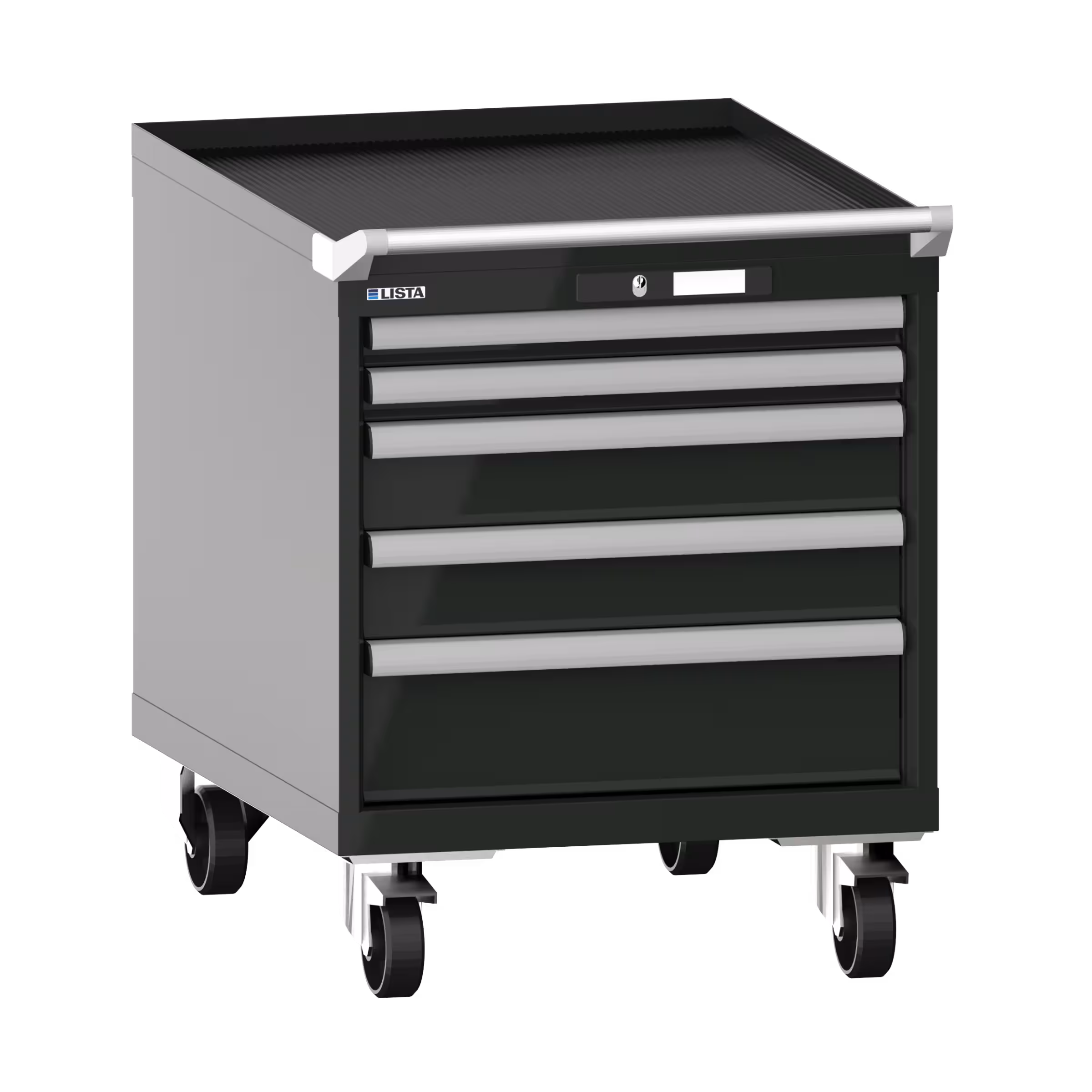 Schubladenschrank mobil 27x36E (BxTxH) 564x725x723mm 5 Schubladen (2x50/2x100/1x150) 75kg Nylonrollen Ø100mm KEY Lock Schwarz NCS S 9000-N
