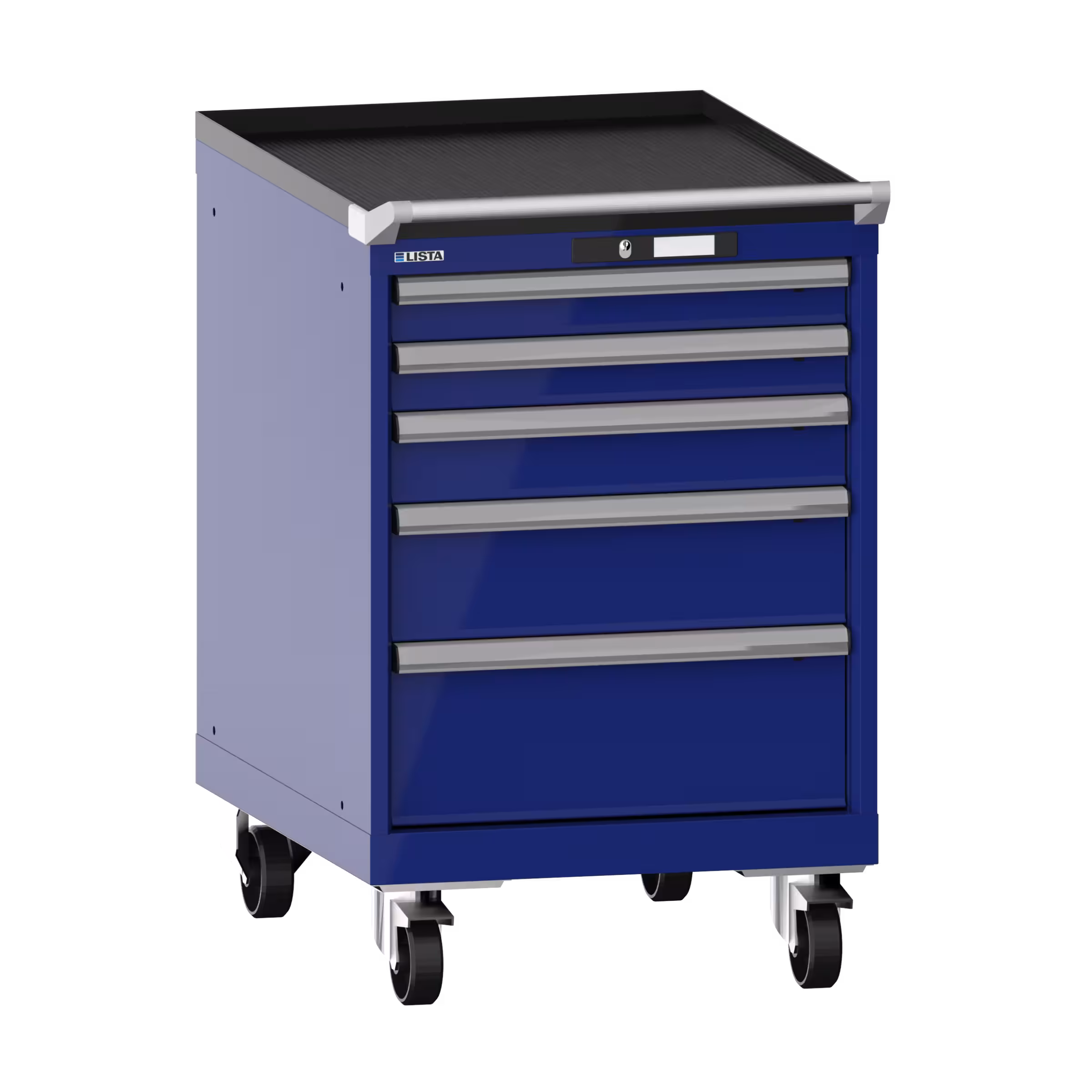 Schubladenschrank mobil 27x36E (BxTxH) 564x725x890mm 5 Schubladen (2x75/1x100/1x150/1x200) 75kg Nylonrollen Ø100mm AUTO Lock Ultramarinblau RAL 5002