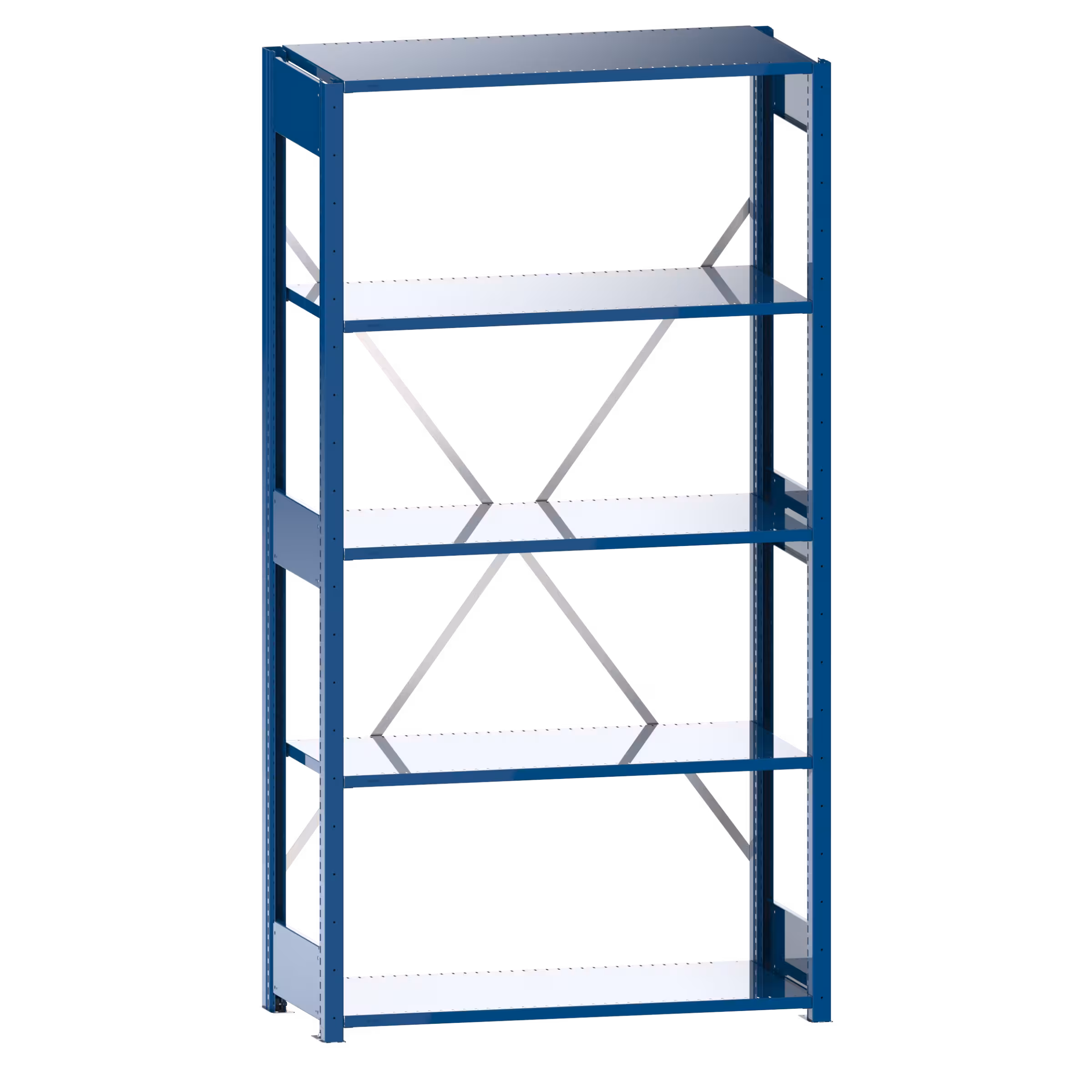 Universalregal L1006 Grundregal (BxTxH) 1000x500x2000mm 5 Fachböden geschlitzt (160kg) Enzianblau RAL 5010