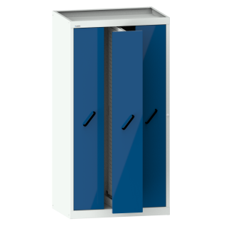 Vertikalauszugschrank mit Frontblenden (BxTxH) 1000x695x1950mm 3 Auszüge mit Lochwände Lichtgrau RAL 7035 / Enzianblau RAL 5010