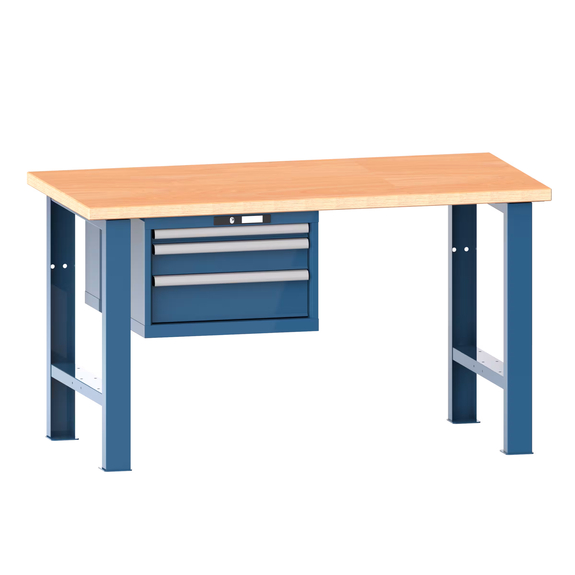 Werkbank 27x27E (BxTxH) 2000x700x890mm 3 Schubladen (1x50/1x100/1x150) 75kg Multiplex RFID Lock Brillantblau RAL 5007