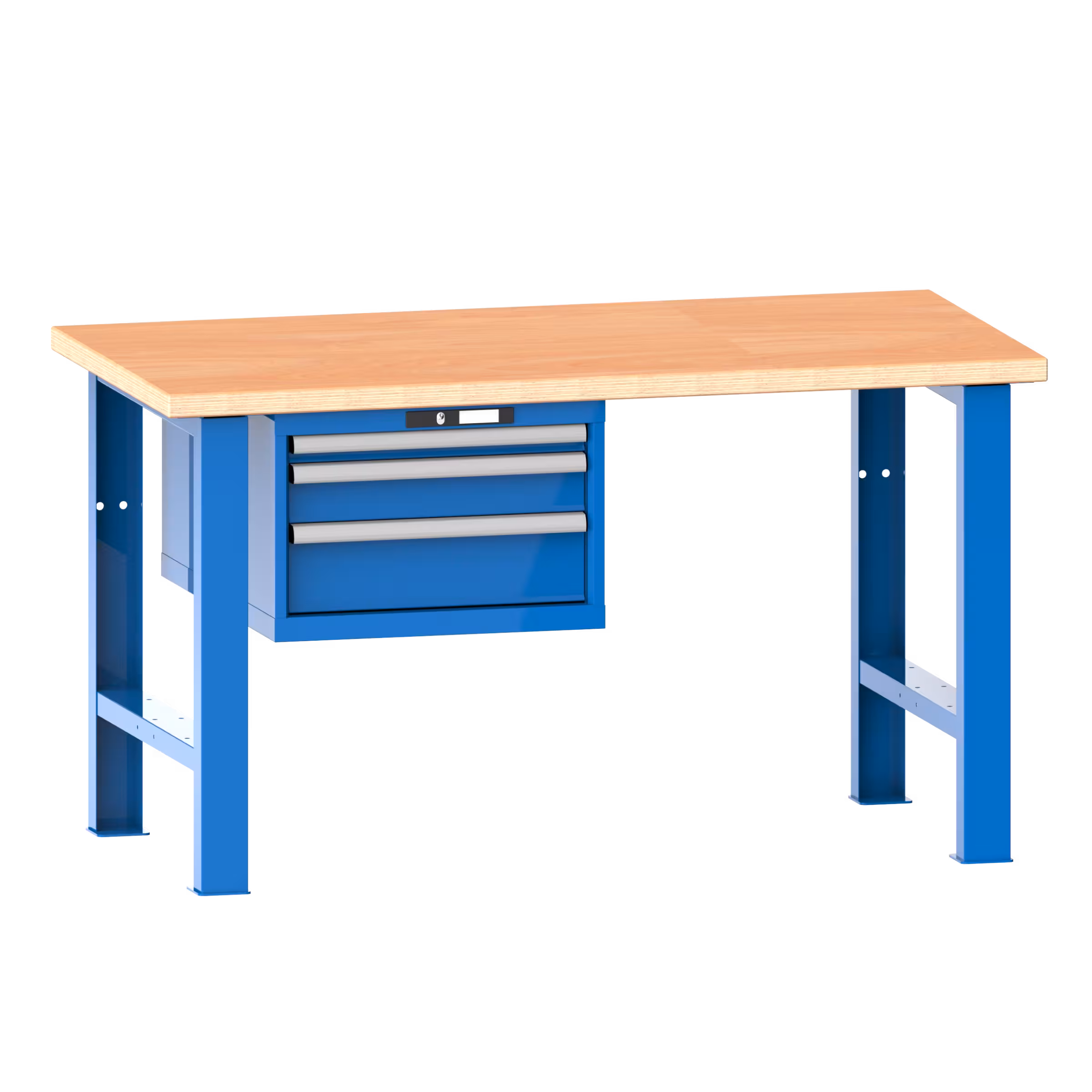 Werkbänke: Mit Multiplex- oder Buchenplatte inklusive Vormontage und Befestigungsmaterial. Schubladenschrank sowohl rechts als auch links montierbar.