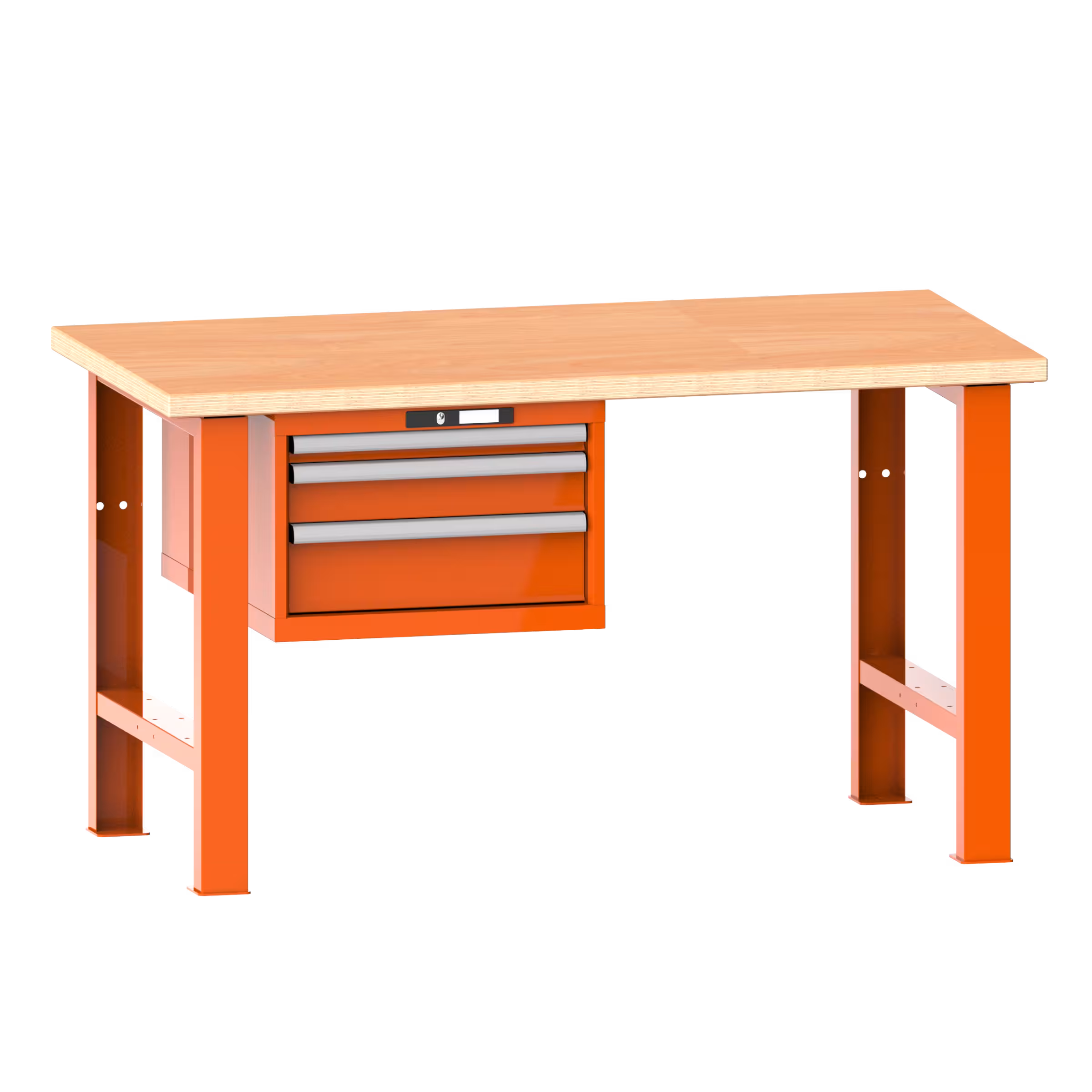 Werkbank 27x27E (BxTxH) 2000x700x890mm 3 Schubladen (1x50/1x100/1x150) 75kg Multiplex RFID Lock Orange RAL 2004