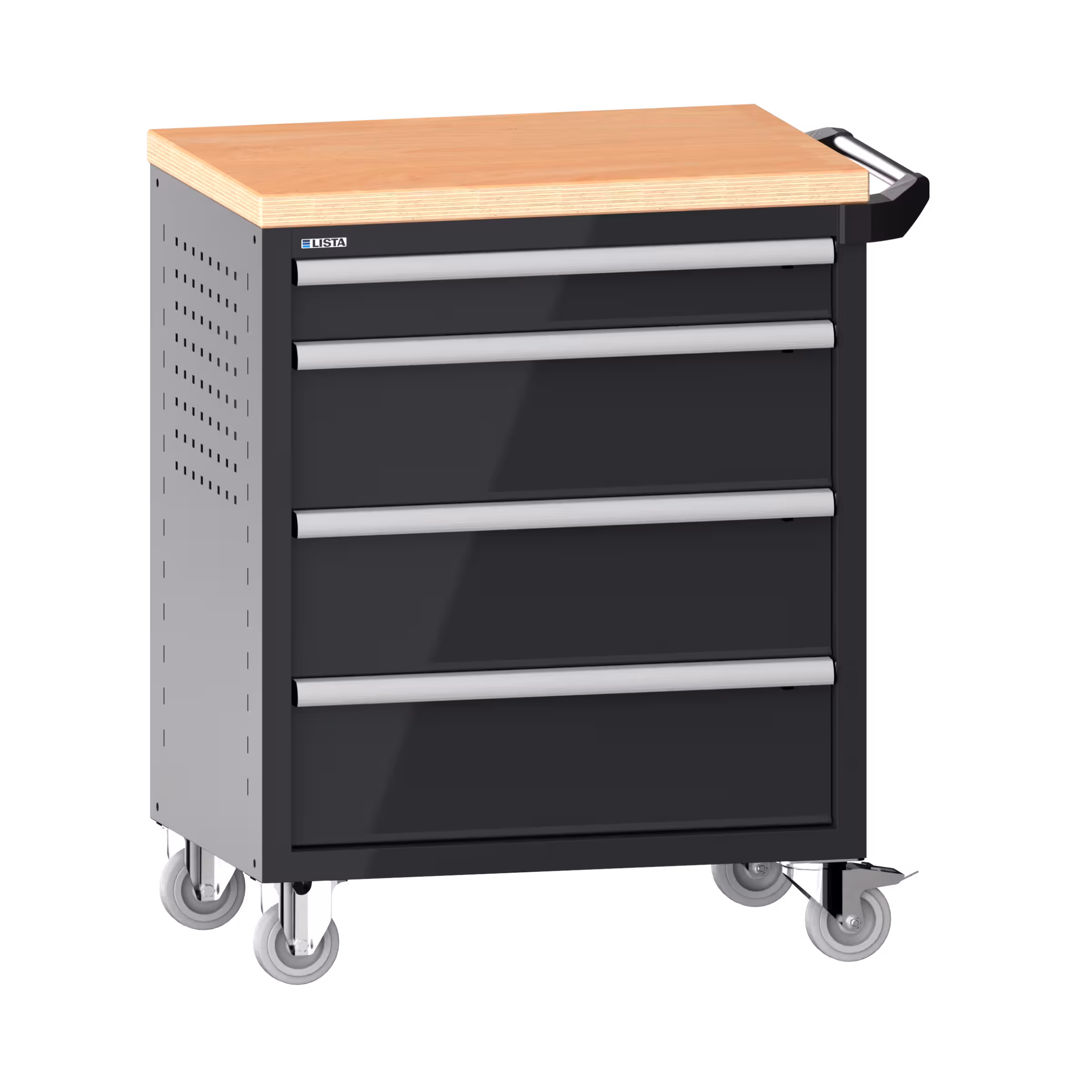 Werkstattwagen 36x27E (BxTxH) 833x525x945mm 4 Schubladen (1x100/3x200) 40kg mit Holzabdeckung Einzelsicherung rechts KEY Lock Anthrazitgrau RAL 7016