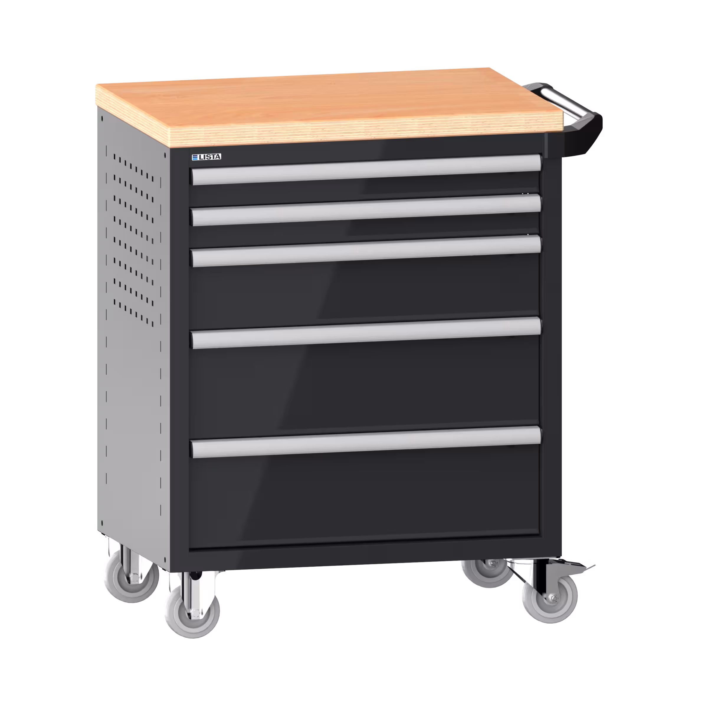Werkstattwagen 36x27E (BxTxH) 833x525x945mm 5 Schubladen (2x75/1x150/2x200) 40kg mit Holzabdeckung Einzelsicherung rechts KEY Lock Anthrazitgrau RAL 7016