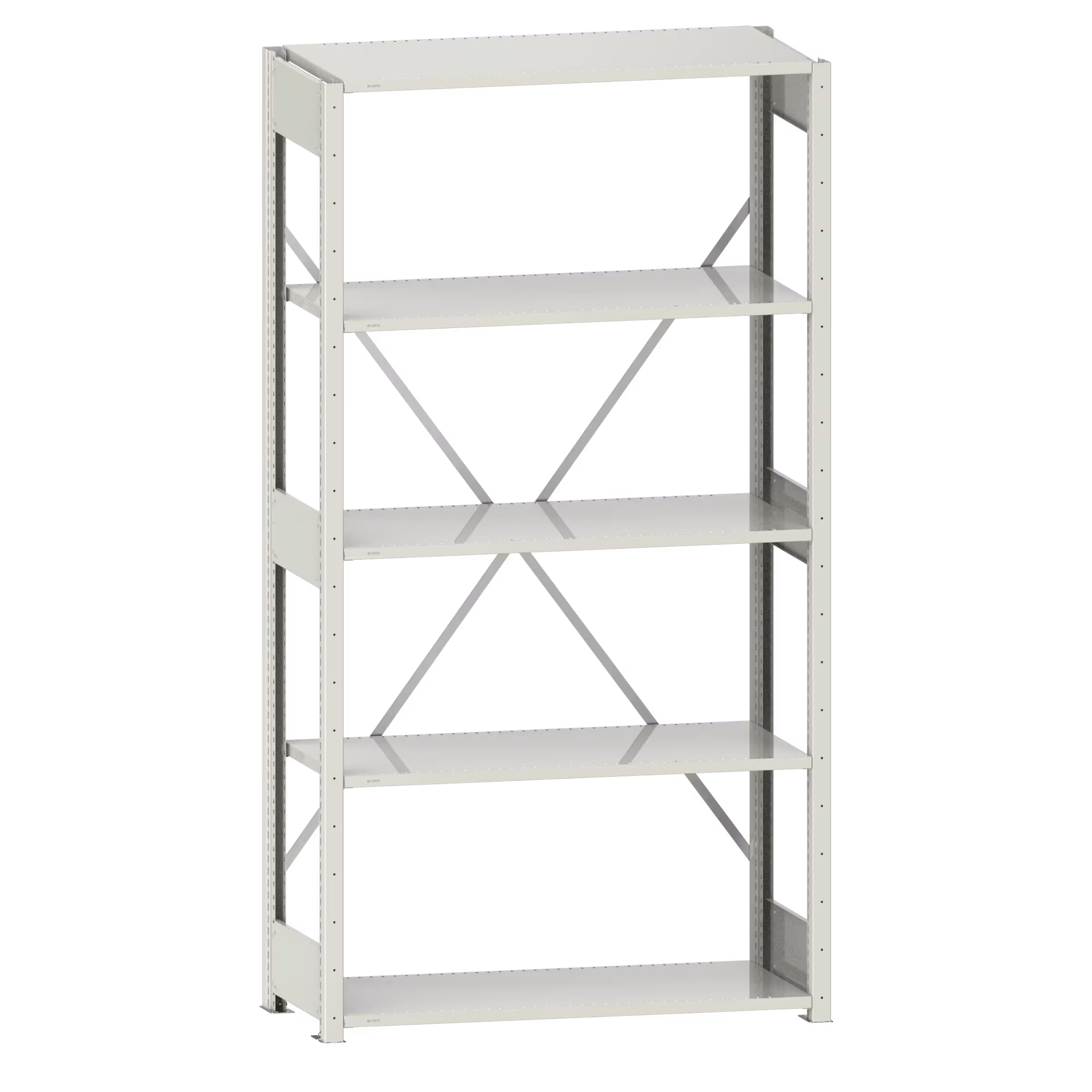 Universal shelving L1006 basic unit (WxDxH) 1000x500x2000mm 5 shelves slotted (160kg) Grey-white RAL 9002