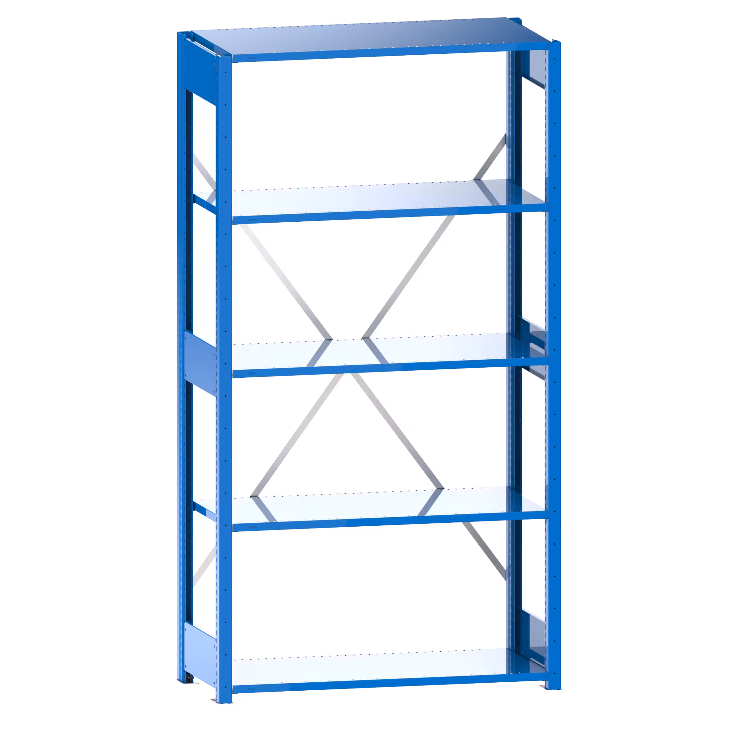 2 pairs of shelf support incl. 6 horizontal braces, 1 diagonal brace galvanized, shelves slotted (thickness 25 mm)