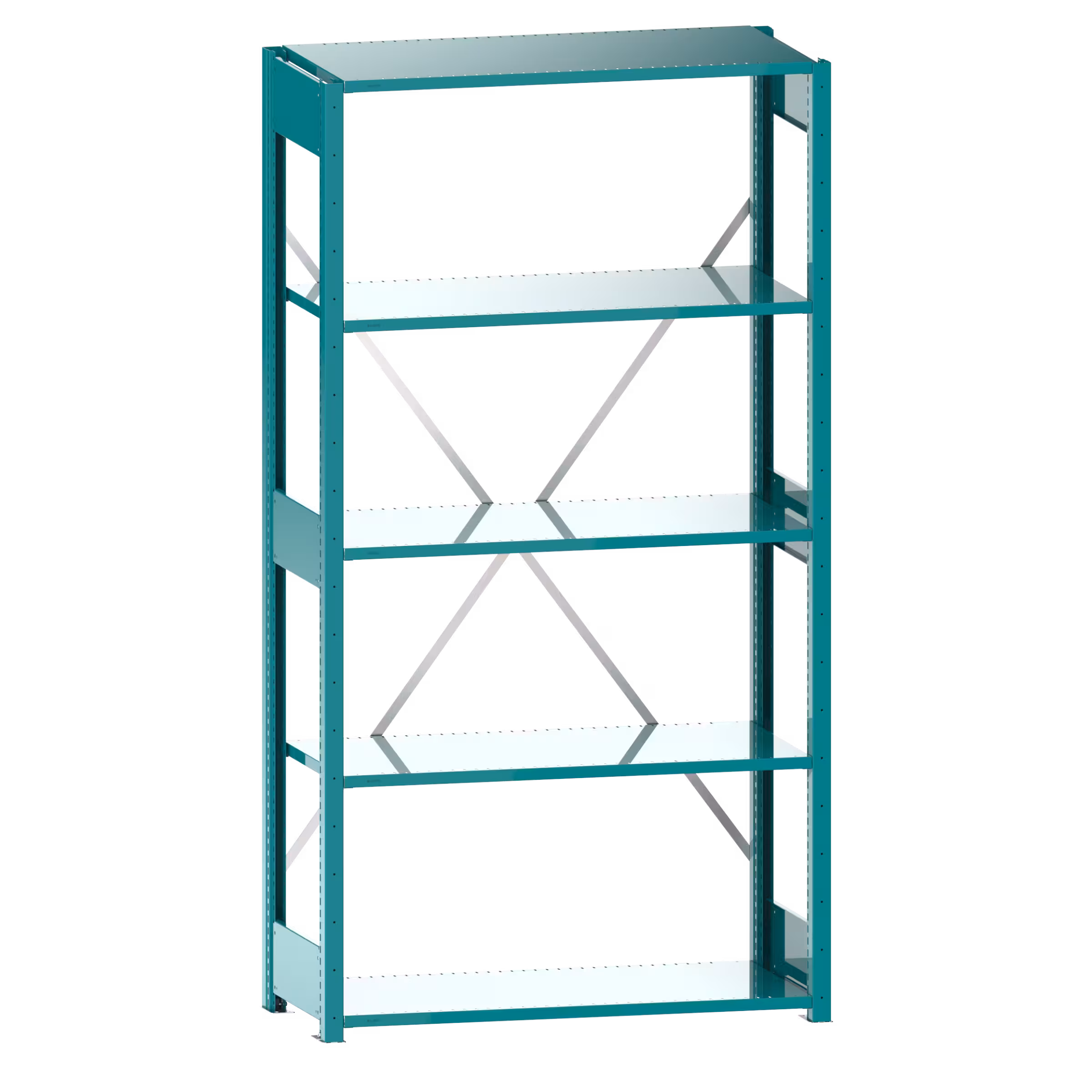 Shelves, plain or slotted, max. shelf load 80, 160, 220, 280 and 400 kg: Shelf supports included. Shelf thickness 25 mm. Specification: sheet steel. Colour: according to colour chart or galvanised.